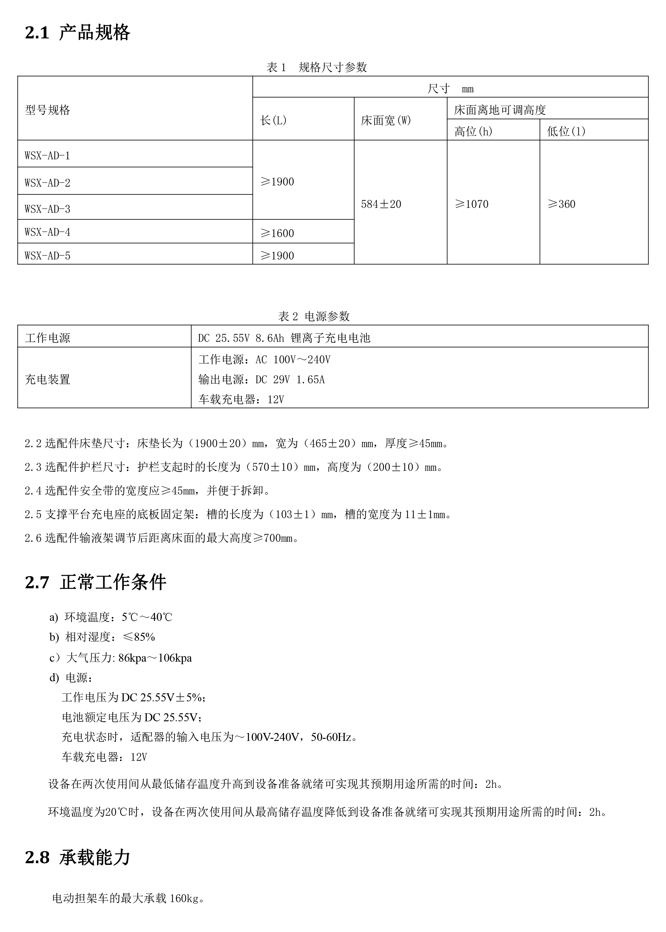 产品描述:电动担架车由床面、泄压把手、电池盒、控制板、充电接触头、升降机构、电液推杆、下支撑组件、脚轮、定向轮踏板、刹车、以及选配件组成。选配件包含:1.护栏;2.输液架;3.支撑平台(包含导轨、车载充电器、充电座);4.床垫;5.仪器放置台;6.电源适配器;7.安全带。根据床面不同,可分三种型式:1.床面为背板、臀板以及腿板;2.床面为支撑壳;3.床面为可拆卸担架。同时根据床板长度不同,有普通款和短款之分。